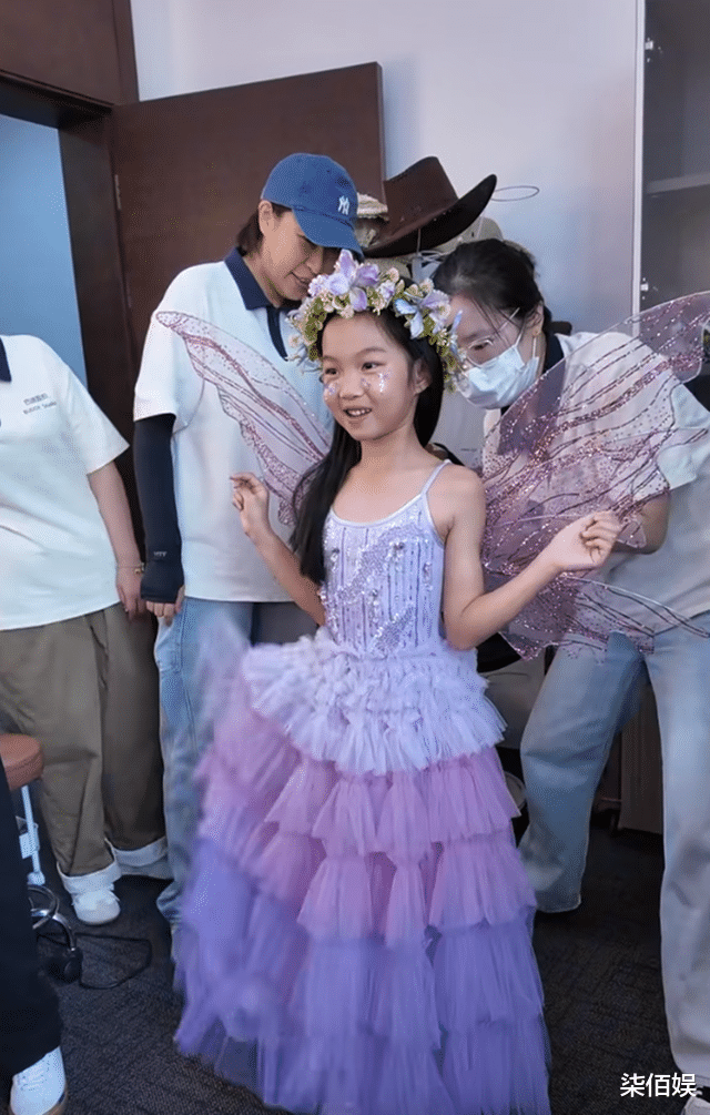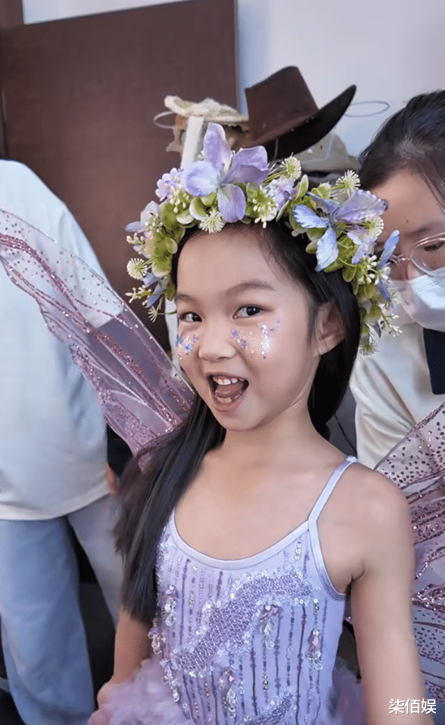 跟着妈妈逛海洋公园的念念还体验了蝴蝶仙子造型,披散着一头长发戴着花环,身穿吊带连衣裙出镜的念念,摘掉眼镜化上妆的她好漂亮。
