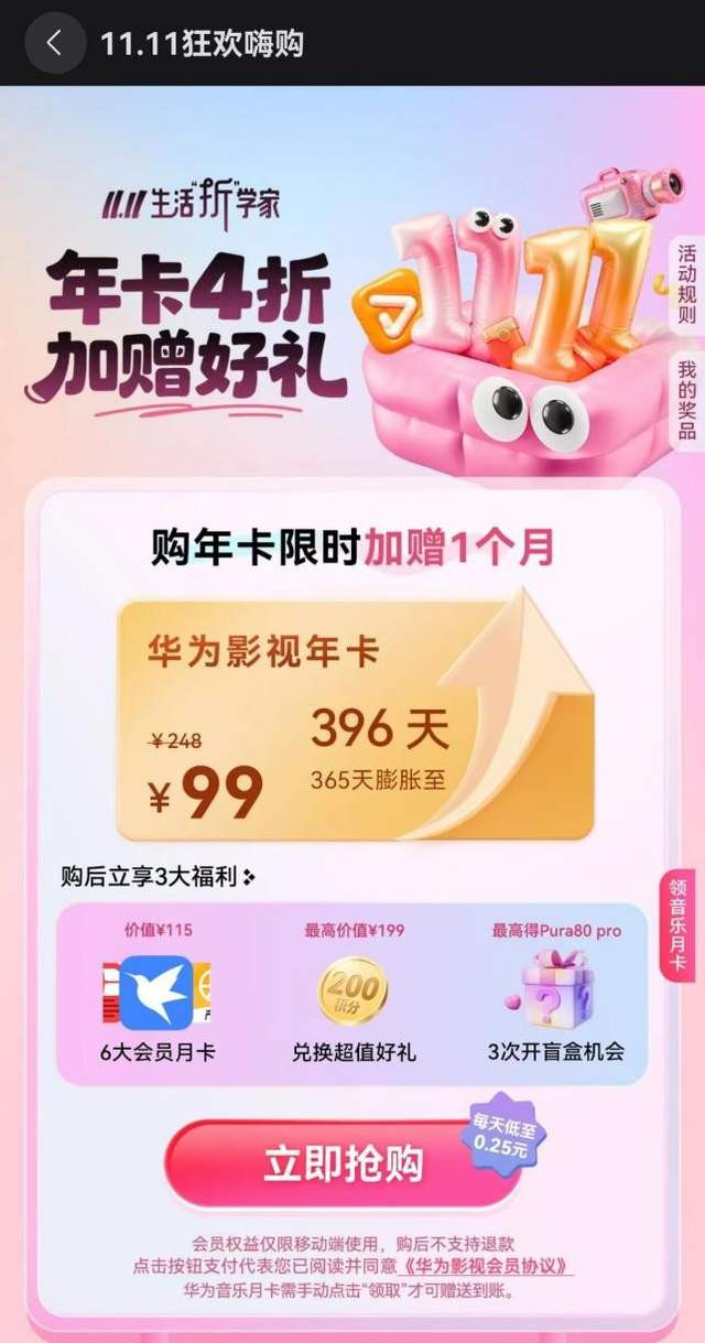 升级鸿蒙5系统后,许多华为应用功能也随之升级,小惊喜越来越多。我最近用华为音乐听歌时就发现,每首歌都有超高清音频或空间音频质感拉满。空间音频的沉浸感,让你无论是专注办公或者专心购物,都能获得沉浸式体验。双11期间超优惠价购买年卡,加赠2个月,还能抽手机大奖,送联合会员!新会员还能6.9元入手3个月会员!